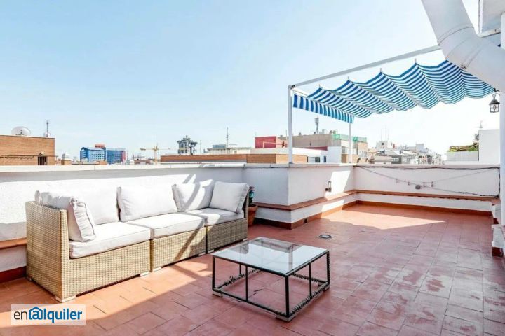 ¡ESPECTACULAR TERRAZA, DECORACIÓN CUIDADA Y EXQUISTAS VISTAS! ¡VERLO ES QUEDÁRTELO! Impresionante ÁTICO de 145m2, donde la luz natural prima en todas las estancias y la tranquilidad que se respira te harán tener una maravillosa estancia en Madrid. Suelos de tarima, techos de gran altura y puerta blindada. CONSTA DE: - DORMITORIOS: La habitación principal con amplios armarios empotrados, cama doble con canapé y baño en suite con gran plato de ducha y ventanas. La habitación secundaria o auxiliar con armarios empotrados y cama nido. - TERRAZA: Muy amplia de 30m2 donde disfrutaremos de una preciosa vista de los skylines de Madrid. Toldo y sofás exteriores. - BAÑO: Acogedor y de diseño, con amplia ventana, bañera estilo retro de hierro forjado y lavabo grabado con estilo moderno. - COCINA: Diseñada para ti, con tonos azul pastel, con todos los electrodomésticos necesarios y de primeras calidades, así como menaje completo de cocina y altillo de almacenamiento, - SALÓN: Espacioso y muy luminoso a doble altura, de unos 35 m2, consta de zona comedor, chimenea de obra, amplio sofá y acceso a la terraza. - Calefacción central, carpintería exterior de climalit y splits de frío / calor en habitaciones y salón. La zona de Prosperidad representa una de los barrios más emblemáticas de nuestra Madrid, en ella puedes encontrar gran cantidad de opciones de ocio como tiendas, museos, teatros, restaurantes, supermercados, gimnasios y comercios a su alrededor. SE ALQUILA CON CONTRATO DE TEMPORADA. ¡RESÉRVALO EN BEMADRID. ES! Puedes RESERVAR directamente en el ENLACE ADICIONAL que encontrarás debajo del anuncio o si prefieres puedes llamarnos al teléfono que indicamos a continuación. IRENE 693802495.