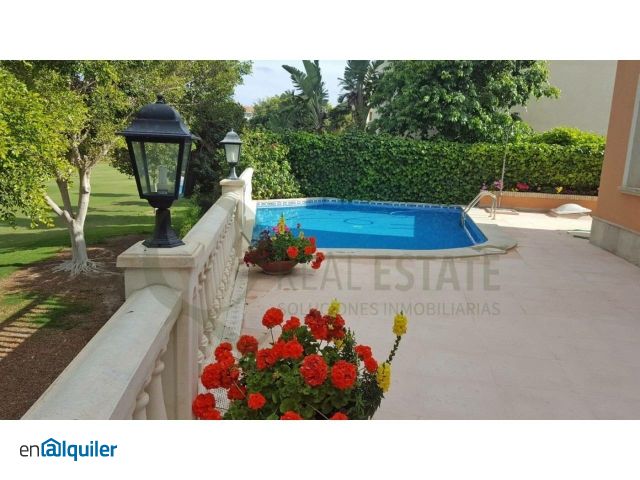 CHALET INDEPENDIENTE DE ENSUEÑO EN PLENO CORAZÓN DEL GOLF *ALQUILER DE LARGA TEMPORADA* En una parcela de unos 400m2 y una orientación privilegiada, se erige este espacioso y luminoso chalet independiente de 4 alturas. Con materiales de gran calidad empleados y una excelente distribución. Con unos 350m de superficie útil, cuenta con 4 espaciosos dormitorios dobles con sendos armarios empotrados, 4 cuartos de baño y un salón amplio junto cocina además de otro amplio salón en el sótano. Desde la cocina se divisa el patio principal para que el acceso a la piscina privada sea lo más eficiente posible. Metros suficientes como para disfrutar de un área de barbacoa, solárium y unas vistas envidiables al golf de Alicante. Además de destacar por las calidades empleadas y todo el potencial arquitectónico, está en una zona tranquila. Asimismo cuenta con un garaje en la zona del sótano con capacidad para hasta 2 vehículos. Cabe resaltar que esta zona es una de las más demandadas y con mayor caché de la Costa Blanca. Privacidad, tranquilidad, buenas conexiones con las mejores playas y el centro de la ciudad, servicios esenciales; todo ello dispuesto para permitirse disfrutar de una experiencia de vida y comodidad. NOTA: Para viviendas en venta, el precio de venta anunciado no incluye IMPUESTO DE TRASMISIONES PATRIMONIALES, NI GASTOS DE NOTARÍA Y REGISTRO.