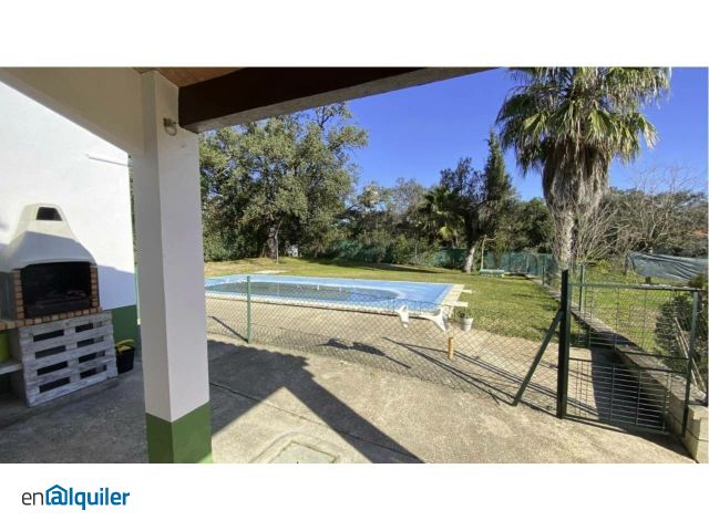 Se alquila chalet en Badajoz, solo larga duración (mínimo 1 año), carretera de Valverde KM13, esta construido sobre una parcela de 2.000 m2, piscina recubierta de gresite con depuradora, rodeado de césped con riego automático, la casa dispone de dos habitaciones, amplio salón con chimenea, baño y cocina. Construido aparte, trastero de unos 4 m2, el chalet tiene instalado punto de fibra óptica (Internet y Tv). el precio es de 750? NO NEGOCIABLES.
