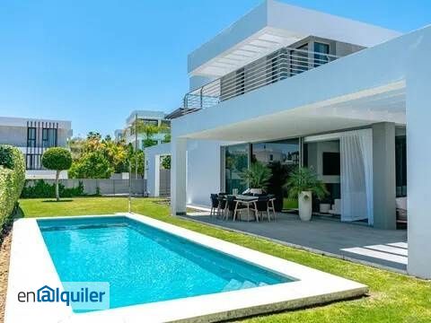 MODERNA VILLA DE ALTO NIVEL CON PISCINA PRIVADA Y CINE EN CANCELADA Impresionante villa moderna de 4 dormitorios y 4 baños para alquiler vacacional en Cancelada, ofreciendo una escapada de alto nivel con piscina privada y sala de cine. Es ideal para quienes buscan espacio, privacidad y comodidad, estando a solo unos minutos de la playa y del vibrante Puerto Banús. Esta preciosa casa independiente presenta 4 amplios dormitorios, cada uno con su propio baño privado. En el interior se encuentran muebles nuevos de estilo contemporáneo, una zona de estar y comedor de planta abierta, y grandes ventanales del suelo al techo que proporcionan abundante luz natural. Los huéspedes pueden disfrutar de una sala de cine y un salón de entretenimiento con mesa de billar. La propiedad está ubicada en Cancelada, en un vecindario tranquilo y privado. El exterior cuenta con una piscina privada, una acogedora zona de estar, un comedor cubierto y un jardín tranquilo. La villa incluye dos plazas de aparcamiento privadas. Está situada a solo 5 minutos en coche de la playa y a 15 minutos del famoso Puerto Banús, cerca de excelentes restaurantes, beach clubs y tiendas, sirviendo como una base con estilo para explorar la Costa del Sol.
