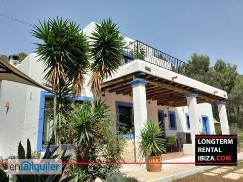 ANNUAL RENTAL - SANT JUAN BAUTISTA. Charming and very private three bedroom villa with private driveway, only five km from beautiful beaches like Portinax and surrounded by nature and forest, the ideal house to have al fresco dinners with friends and enjoy the peace and quiet of the countryside. It has three bedrooms each with its own balcony, three bathrooms and a terrace with awning equipped with sports machines and sun loungers. The fully equipped kitchen has a dining area, a beautiful fireplace and access to the outdoor barbecue area. The dining room has a table for up to eight people and is open to the bright living room which has a beautiful fireplace and large sliding glass doors leading to the covered porch. The villa has two wooden cabins of 100m² and 60m², ideal as guest accommodation or additional relaxation area. The villa has air conditioning and heating, parking space, swimming pool and outdoor recreational areas, perfect for families or couples looking to get away from the hustle and bustle of the city and enjoy family and friends. Schedule your viewing!