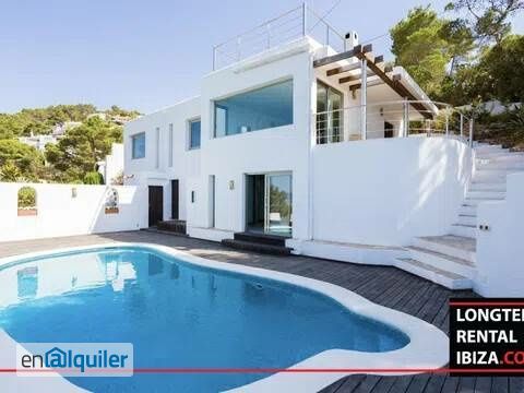 CALA BASSA - ANNUAL RENTAL. Available from January, this beautiful villa is located in the sought-after Cala Bassa / Cala Conta area, offering stunning sea views and a peaceful yet well-connected setting in the west of Ibiza. Distributed across two levels, the house features four comfortable bedrooms plus an additional room that can serve as a guest space, office or playroom. There are three full bathrooms, one guest toilet and an outdoor shower, providing ample comfort for families or guests. The main living area opens directly to the pool terrace and is connected to a fully equipped kitchen, designed for both everyday living and entertaining The exterior spaces are a highlight of the property, with a private swimming pool, a chill-out area, a barbecue zone and multiple terraces overlooking the sea. The rooftop deck, currently used as a yoga and relaxation terrace, offers panoramic views and a tranquil atmosphere to enjoy the sunset or simply unwind The villa also includes private parking, air conditioning, Wi-Fi, Smart TV with satellite, and a full alarm system with 24-hour security, ensuring both comfort and peace of mind. Its location offers excellent access to nearby beaches and amenities while still enjoying the privacy of a residential setting This property is offered as an annual rental with payment terms of one year in advance.Schedule a viewing with our agent.