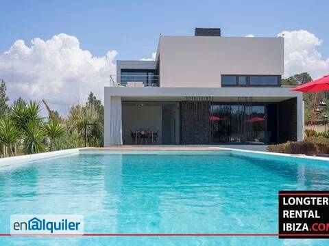 ANNUAL RENTAL - BENIMUSSA. In a place as quiet as the Benimussa Valley, in the heart of the Island of Ibiza, place surrounded by the authentic and tranquil Ibizan landscape, is carried out with care and respect for nature, this elegant architectural project. Using the light of the Mediterranean, the natural beauty of the timeless geometric shapes and the hand of the natural beauty of the island of Ibiza, we work to unite an elegant and modern design. This Villa Ibicenca has an avant-garde aesthetic, its quality and solidity are transmitted in every detail, eliminating everything superfluous and where comfort and functionality prevail. We invite you to know this elegant and beautiful Villa in Ibiza, which provides a sublime experience of freshness in summer and the warmth and comfort of the authentic home in the winter. This modern villa is bright and has lots of natural light. Through the whole house is underfloor heating. On the main level of the villa you find, a dinning room and lounge room, a laundry, a fully equipped kitchen with the highest standard, a bedrooms and bathroom. On the first floor are three bedrooms, two bathrooms and a home office. The outside area is divided in a outside pergola living room with bar / barbecue, lounge area with lounge beds and swimming pool. In front to the house is a covered garage for two vehicles. A perfect house to live, work and relax the whole year. Schedule a viewing with our agent.