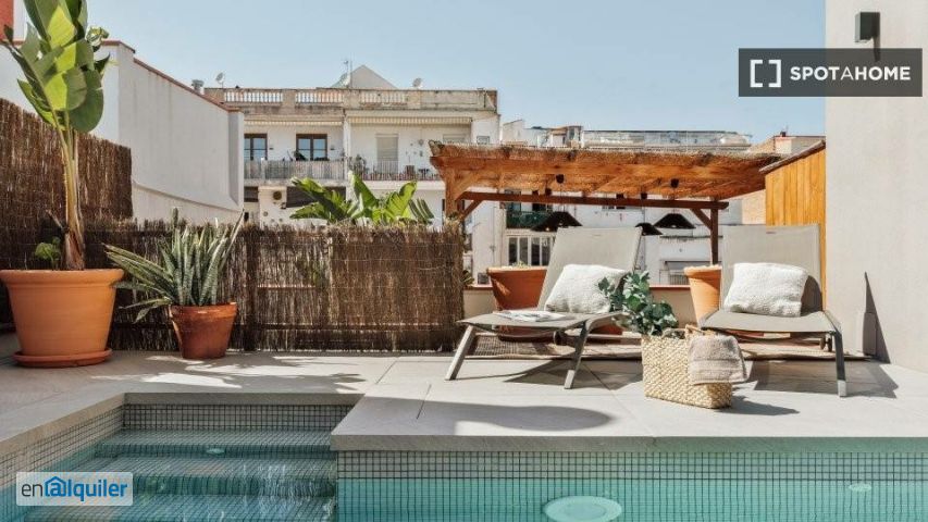Piso de 1 dormitorio amueblado en alquiler en Barcelona. La propiedad está en el 2do piso.