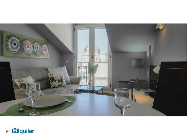 Fantastic attic maisonette with terrace, sleeps up to eight people. Situated on top floor. Large terrace with spectacular views of the Latina district, the domes of San Francisco el Grande, the cathedral of San Isidro and the Casa de Campo. Two floors with four double bedrooms and living room. Two bathrooms. The fully equipped kitchen is modern and functional. Wooden floors and double glazed windows. Beautiful apartment with lots of natural light located in new building, fully furnished and decorated in a modern, neat style. Two bedrooms, one large bathroom, and a sofa in the living room, which also has access to a terrace with outside view. The kitchen is fully equipped and functional. *More details: Beds: 2 double / 4 single Linens: Yes Bathtub & shower: Yes Central A/C: Yes Lift: Yes Pets allowed: Yes only if they weigh 8 kilograms or less. (with ?600 refundable deposit). Conditions for monthly rentals: Included in the price: * Community fees * Maintenance fees * Taxes (individuals only) Not included in the price: * Utility charges (water, energy, gas, internet) * First-month rent to be paid in advance * Refundable guarantee deposit: 2 months Employees: Contract + last 3 wages Students: University admission letter CHECK-IN/OUT TIMES: - Check-in: Monday to Friday, from 16:00h to 20:00h - Check-out: Monday to Friday, from 09:00h to 11:00h Check-in/out outside those times, weekends, and national holidays: 30? (paid in cash) MANDATORY CLEANING FEE: 50?/month Please be aware that HousingAnywhere is an online booking platform. Therefore exchanging contact details and offering viewings is not possible. If you would like to reserve this accommodation, send me a booking request or a message and please mention your age and occupation. I look forward to meeting you!