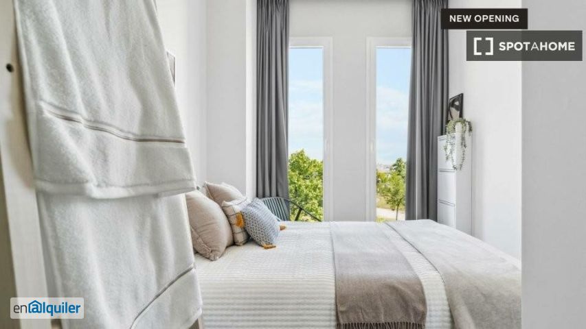 Con elegantes estudios y apartamentos de 1 y 2 dormitorios, este moderno edificio es la solución ideal para disfrutar de estancias flexibles en Madrid. Ubicado en el Ensanche de Vallecas, este alojamiento ofrece un estilo de vida integrado que se adapta a diferentes estilos de vida, con espacios completamente amueblados y servicios de primera clase. Los residentes pueden disfrutar de un momento de relax en la terraza y la piscina, ponerse en forma en el gimnasio o disfrutar de una noche de cine en la sala de cine. El edificio también incluye espacios de coworking y salas de reuniones, ideales para la productividad y la concentración, así como salas comunes y zonas ajardinadas exteriores. Este espacioso apartamento es un santuario con estilo, diseñado para una vida moderna y flexible. Totalmente amueblado y equipado, incluye una sala de estar y comedor compartidos, una cocina totalmente equipada con todo lo necesario para cocinar sus platos favoritos y dos baños. Planta: 6.ª