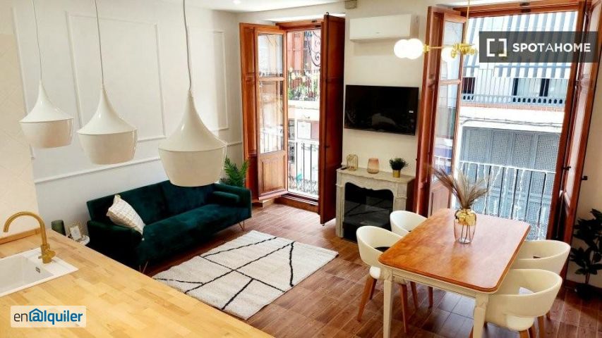 Este encantador apartamento de 3 habitaciones está disponible para alquilar en el vibrante barrio de El Mercat. Con una cocina equipada con electrodomésticos modernos, como lavavajillas, horno y lavadora, este apartamento ofrece comodidad y conveniencia. El apartamento amueblado incluye aire acondicionado individual para un confort personalizado y, al ser exterior, cuenta con un balcón para disfrutar de las vistas. La propiedad ha sido verificada personalmente por Spotahome, lo que garantiza su calidad y autenticidad. Ubicado en El Mercat, Valencia, este apartamento está rodeado de lugares de interés cultural como el Mural Petit Palomar, Arte Urbano y Street Art XLF. Las ricas atracciones artísticas de la zona, como el Grafiti Apaisado Julieta y el Centro Histórico de Valencia, ofrecen experiencias únicas a un paso de tu nuevo hogar.