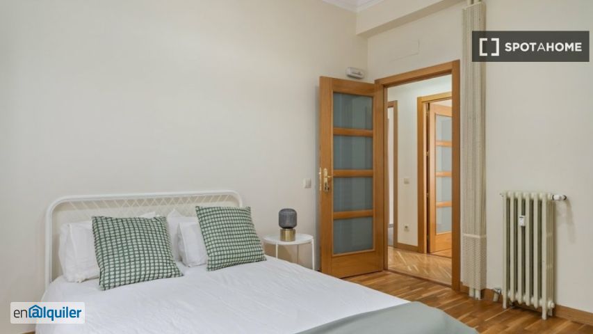 Esta habitación completamente amueblada se encuentra en un apartamento de 6 dormitorios equipado con comodidades modernas, como calefacción de gas natural, lavadora, lavavajillas y cocina equipada para su comodidad. El apartamento es exterior y cuenta con ascensor para mayor comodidad. No se admiten mascotas ni fumar; no se admiten parejas. Esta propiedad ha sido revisada por Spotahome. Ubicado en el barrio madrileño de Guindalera, este apartamento está convenientemente cerca de varios puntos de interés. Lugares históricos como el Palacio del Marqués de Amboage y Zero Latency se encuentran a poca distancia a pie. Cafeterías y restaurantes locales, como el Café Bejarano ii Bar, ofrecen opciones para comer en las inmediaciones. Además, la ubicación del apartamento ofrece fácil acceso a vibrantes atracciones culturales.