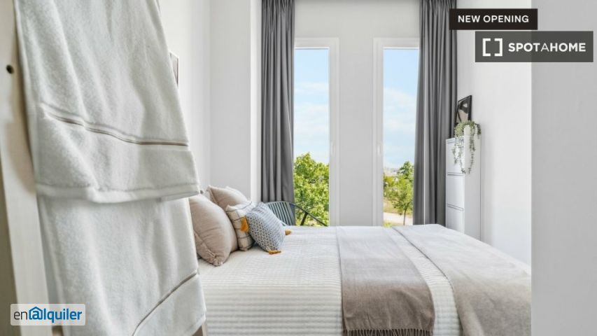 Con elegantes estudios y apartamentos de 1 y 2 dormitorios, este moderno edificio es la solución ideal para disfrutar de estancias flexibles en Madrid. Ubicado en el Ensanche de Vallecas, este alojamiento ofrece un estilo de vida integrado que se adapta a diferentes estilos de vida, con espacios completamente amueblados y servicios de primera clase. Los residentes pueden disfrutar de un momento de relax en la terraza y la piscina, ponerse en forma en el gimnasio o disfrutar de una noche de cine en la sala de cine. El edificio también incluye espacios de coworking y salas de reuniones, ideales para la productividad y la concentración, así como salas comunes y zonas ajardinadas exteriores. Este espacioso apartamento es un santuario con estilo, diseñado para una vida moderna y flexible. Totalmente amueblado y equipado, incluye una sala de estar y comedor compartidos, una cocina totalmente equipada con todo lo necesario para cocinar sus platos favoritos y dos baños. Planta: 6. ª