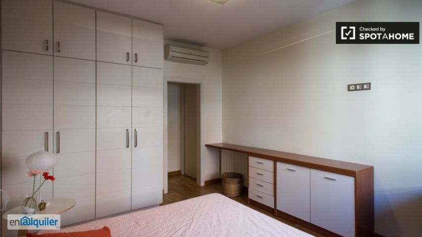 Habitaciones en excelente apartamento de 4 dormitorios en Guinardó. Esta propiedad ofrece una gran variedad para personas de diferentes gustos y presupuestos y es incluso ideal para parejas. Si usted está buscando algo más elegante o algo más modesto, encontrará lo que quiere aquí. La cocina cuenta con comodidades modernas y un montón de espacio en el armario. La sala de estar tiene un bonito mobiliario, una televisión grande, una mesa de comedor con sillas y ventanas grandes para dejar entrar la luz natural. Le encantará socializar aquí con sus compañeros de piso y amigos después de un largo día o el fin de semana. Incluso hay estantes y espacio para agregar sus propias decoraciones. Por último, el suelo de madera, muebles y otros detalles añaden un toque encantador de calor al apartamento. Guinardó es un hermoso barrio situado en el norte de Barcelona. Es en gran parte residencial, por lo que vivirá entre las familias y otros lugareños. Cerca hay supermercados y cafés. Para comercios, hay Lidl a la vuelta de la esquina. Si te gusta el aire libre, te encantará pasar tiempo en el Parque Guinardó donde se puede visitar los Carmelo Bunkers y disfrutar de una de las vistas más espectaculares de la ciudad!