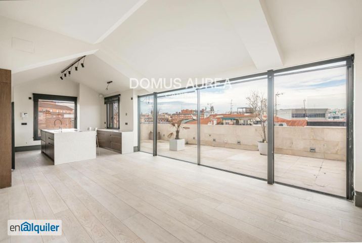Domus Aurea Capital presenta este espectacular ático dúplex de obra nueva, situado en la última planta de un edificio de reciente construcción, con una luminosidad extraordinaria y vistas completamente despejadas hacia Plaza Colón. La vivienda, de 212m2, se distribuye en dos cómodas plantas y disfruta de una privilegiada doble orientación norte-sur. Sus grandes ventanales y la entrada de luz natural desde el este y el oeste llenan cada estancia de claridad durante todo el día, aportando una sensación de amplitud y conexión con el exterior poco habitual. El ático ofrece calidades propias de una obra nueva, como suelo radiante y refrescante mediante aerotermia, y una espectacular terraza concebida como una auténtica prolongación de la zona de estar, con vistas abiertas y jacuzzi, perfecta para disfrutar del skyline madrileño. En la planta inferior se encuentra una elegante zona de recepción con armarios a medida que da acceso a la zona de descanso, compuesta por dos dormitorios en suite. La suite principal destaca por su vestidor y por una zona de dormitorio completamente bañada por luz natural gracias a sus amplias puertas-ventana abiertas al patio principal. La planta superior alberga una magnífica zona de día con un amplio salón-comedor con salida directa a la terraza. El cerramiento permite una apertura total, creando una continuidad perfecta entre interior y exterior y potenciando la luz y las vistas. La cocina, abierta e integrada, presenta un diseño contemporáneo y una estética cuidada. En este nivel se encuentra también un espacio polivalente ideal como despacho y un aseo de cortesía. Domus Aurea Capital es una agencia inmobiliaria especializada en activos inmobiliarios prime en Madrid y alrededores. Para conocer nuestra cartera completa, le invitamos a visitar nuestra web.