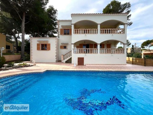 Este encantador chalet independiente, situado en la codiciada zona residencial de Nova Santa Ponsa, ofrece una excelente combinación de tranquilidad, comodidad y cercanía al mar. A tan solo 300 metros de la costa, la propiedad se encuentra en una zona familiar y muy demandada, cerca de todos los servicios. La vivienda, distribuida en dos plantas, cuenta con 5 amplios dormitorios y 3 baños, ideal para familias que buscan espacio y confort para una larga estancia. Su orientación sur garantiza abundante luz natural durante todo el día y permite disfrutar de agradables vistas. En el exterior, la propiedad dispone de dos terrazas, un porche con auténtico estilo mallorquín y una zona de barbacoa, perfectos para disfrutar del clima mediterráneo y de reuniones al aire libre. Además, cuenta con una gran piscina privada, ideal para refrescarse y relajarse durante los días de verano. El chalet también incluye un garaje con capacidad para dos coches y se alquila sin amueblar, ofreciendo la oportunidad de decorarlo y adaptarlo completamente a su estilo personal. Una oportunidad única para vivir en una de las zonas más exclusivas del suroeste de Mallorca, en un entorno tranquilo y a pocos minutos del mar. Disponible para visitar. Estaremos encantados de mostrarle esta propiedad.
