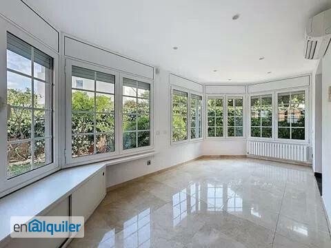 Excepcional casa esquinera adosada en una urbanización con control de seguridad las 24 horas durante todo el año que se alquila sin muebles. Destaca la luminosidad y tranquilidad de sus estancias, todas exteriores y con muy buena orientación. Además, ofrece comodidades exclusivas como un club privado con jardín comunitario con piscina y zona de juegos infantiles, un gimnasio equipado con máquinas, vestuarios, baños, servicio para cursillos y casales de verano, frontón, pistas de tenis y pádel. El coste de la cuota de acceso al club irá a cargo del inquilino. Se accede a la casa a pie plano través de la zona posterior del jardín y la puerta principal está bajo un pequeño porche. El recibidor dispone de armario empotrado, junto al mismo un dormitorio individual en suite con armario empotrado y con baño con ducha, ideal para dormitorio de invitados o despacho. Un aseo de cortesía para dar servicio a la zona de día. La cocina es muy funcional y moderna con muebles Leicht de color claro, completamente equipada con electrodomésticos (nevera Balay, placa de cocción de vitrocerámica con grill de Küpperbusch, al igual que el horno y el horno a vapor y lavavajillas de Bosch), y está abierta al comedor formal al jardín perimetral. El amplio salón comedor en forma de L tiene unas vistas panorámicas sobre el jardín a suroeste y noroeste. El salón dispone de un armario empotrado y de balconeras para acceder al jardín con zona de barbacoa. En planta primera encontramos la zona de noche con un dormitorio doble en suite equipado con armarios empotrados, salida a terraza a noroeste de 33m2 y baño completo con bañera, bidet. Un dormitorio doble a suroeste con armario empotrado y balcón de 1,51m2 sobre el jardín. Pasillo con dos armarios. Un baño completo con ducha, bidet y armarios. Completa la planta un tercer dormitorio doble con armario empotrado y balcón de 1,51m2 a noreste. En planta buhardilla se podría ubicar un quinto dormitorio doble. Este espacio polivalente dispone de armarios empotrados, una barra de bar, un cuarto con la zona de lavado y salida una terraza de 14m2 a suroeste. En la planta sótano se ubica una sala de juegos con billar, mesa de juegos y sofá, también podría usarse para home cinema. Junto a la misma una bodega con espacio de almacenaje de vinos, fuente de agua y mesa central. En el distribuidor, bajo la escalera, un amplio armario y el acceso al garaje privado para 3 coches y cuarto trastero. El inmueble dispone de calefacción por radiadores, aire acondicionado con Split en cada dormitorio, en la buhardilla y en el salón comedor. Ventanas de aluminio con vidrio climalit. Mosquiteras enrollables. Persianas motorizadas. Suelos de mármol en la zona de día y parqué de roble macizo en los dormitorios y gres en cocina y baños. Puertas blancas. Luces Led. Sistema de riego automático. Alarma. Sistema de osmosis en cocina y descalcificadora que habría que poner en funcionamiento por parte del inquilino. Una casa con amplias terrazas y jardín ideal para ser alquilado por familias, con zona comunitaria con jardín y piscina y tres plazas de aparcamiento en uno de los mejores barrios de Esplugues de Llobregat. Gastos de comunidad e IBI incluidos en el precio. Suministros, Seguro del hogar y cuota de acceso al club a cargo del inquilino. Se alquila sin muebles. Primer año de obligado cumplimiento. Llámenos y le informaremos.