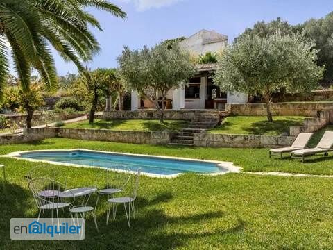 En una de las mejores zonas de Mallorca la zona de Establiments, nos encontramos con una preciosa casa rustica pareada del 1.900, en un terreno de 9.400m2 con pozo de vena. La casa amueblada con una reforma integral muy moderna, tiene una piscina, jardín, zona de huerto y espacio para caballos con cuadras, comunitario con la casa de al lado. Se divide en dos plantas con un espectacular hall de entrada con doble altura, salón comedor con chimenea que da también a la zona de cocina y con salida a preciosa terraza de unos 90m2 en dos niveles con jacuzzy, cocina de alta gama con todas las encimeras de Corian y electrodomésticos encastrados, espectacular barra con espacio para comer y salida a la terraza y jardín, un dormitorio muy espacioso con baño en suite y zona de lavadero, cuarto de maquinas y bodega. En la parte superior tenemos un espacio de despacho, y dos habitaciones dobles una de ellas con baño en suite y vestidor y la principal espectacular de amplia con zona de vestidor, baño en suite y baño turco. De uso exclusivo de la casa esta la zona de barbacoa tipo porche con cocina exterior, horno de leña, aseo y ducha, ideal para reuniones con los amigos en la época de primavera verano. Toda la casa tiene suelos de madera de roble, cemento pulido en baños y cocina, pozo de vena, focos empotrados alta gama, climalit en ventanas, aire frio calor por conductos y calefacción central por radiadores y gasoil, en la zona de entrada hay espacio para aparcar los coches. No se pierda esta maravilla situada en un enclave único lleno de tranquilidad y paz. Los gastos de luz, agua y basuras, van aparte del alquiler y hay 300? adicionales de jardinería y mantenimiento de piscina al mes. Se piden dos meses de fianza y mes corriente. Nominas y referencias y contratos de trabajo fijos. No se lo piense mas y venga a visitarla se quedara maravillado y nosotros se la enseñaremos encantados.