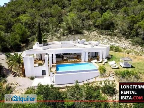 ANNUAL RENTAL - ES CUBELLS. Luxury villa in the private area of the prestigious area of Es Cubells. The villa in on one floor, has three bedrooms en-suite all with direct access to the terrace, a smaller fully equipped kitchen and a large living room with sliding doors and access to the large terrace. The terrace is covered and perfect for outdoors living. There is a large pool and incredible views on the sea of Es Cubels. The villa is accessible by a large drive way, and parking space for four cars. The land is fully excluded and with lots of privacy. This villa has a tourist license. ? Schedule a viewing with our agent.
