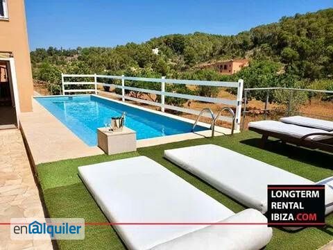 ANNUAL RENTAL - NEAR CAN FURNET. AVAILABLE FROM APRIL. Located just minutes from Can Furnet, this elegant villa offers a peaceful and private lifestyle surrounded by nature, while remaining close to the main attractions of Ibiza. Set on a generous 15,000 m² plot, the property boasts 500 m² of interior space thoughtfully designed for year-round living, making it an ideal choice for families or professionals seeking comfort, space and tranquillity. The villa features five spacious bedrooms and four bathrooms, along with a fully equipped kitchen and bright open-plan living areas that flow naturally to the outdoor spaces. The layout offers privacy and functionality, with each area of the house enjoying natural light and calm surroundings. On the lowest level of the property, a large multipurpose room provides great flexibility. Bathed in natural light, this space can easily be adapted as a private gym, a home cinema, a creative studio or a meeting room. The exterior invites relaxation with wide terraces, a private swimming pool and beautifully maintained gardens including fruit trees and areas with artificial grass, creating a low-maintenance yet green environment. The property is fully equipped with air conditioning, WiFi, a private garage and a high level of privacy and security. Pool and garden maintenance are included in the rental. Please note that pets are not allowed. This villa is an excellent opportunity for those looking to enjoy a quiet and natural setting in Ibiza with easy access to the town, schools, and the coast. For more information or to schedule a visit, please contact our agent.