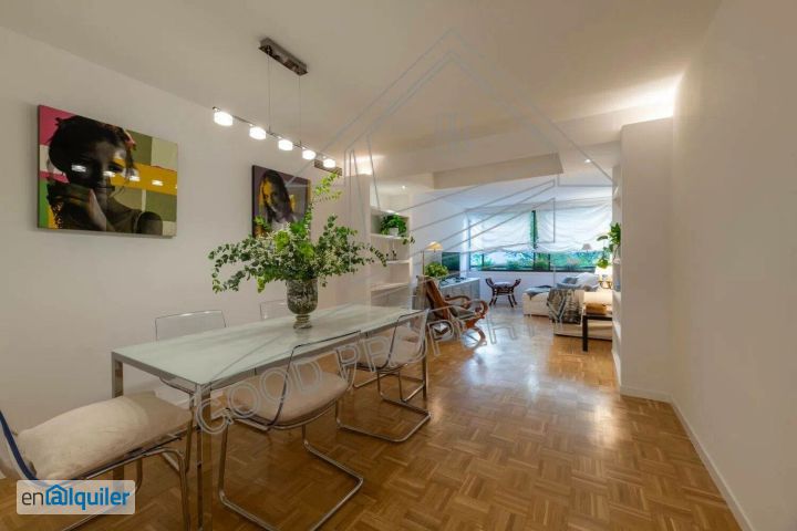 ¡Descubre este estupendo piso en alquiler en el codiciado barrio de Almagro! Con 120 m² construidos y 110 m² útiles, este luminoso hogar cuenta con dos amplias habitaciones, una de ellas con vestidor y baño en suite, ideal para disfrutar de la máxima comodidad. La vivienda está equipada con numerosos armarios empotrados, ofreciendo un excelente espacio de almacenamiento. El amplio salón comedor, adornado con grandes ventanales, proporciona una luminosidad excepcional y un ambiente acogedor. Además, cuenta con un despacho perfecto para trabajar desde casa. La cocina, totalmente equipada con electrodomésticos, te permitirá dar rienda suelta a tu creatividad culinaria. Este piso se encuentra en la segunda planta de un edificio con ascensor y ofrece orientación este, lo que garantiza luz natural durante todo el día. La propiedad también incluye aire acondicionado para los días más calurosos y calefacción eléctrica para el invierno. Para mayor comodidad, hay una plaza de garaje disponible por 200 ? adicionales y un trastero para tus pertenencias. La decoración es estupenda y la vivienda se encuentra en buen estado, lista para que la conviertas en tu nuevo hogar. Además, podrás disfrutar de una refrescante piscina en el edificio. ¡No dejes pasar esta oportunidad única!