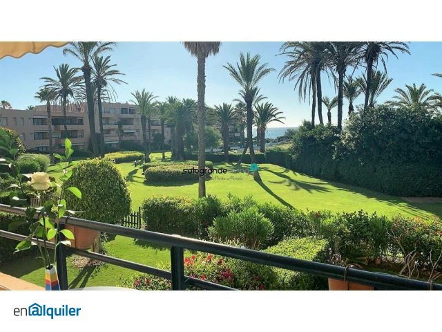 Disponible alquiler septiembre a junio o corta temporada durante todo el año, disponibilidad y precio según estancia y fecha, consultar. Bonito apartamento en la playa de Sotogrande con vistas a los jardines comunitarios y al mar. Consta de salon-comedor con salida a la terraza cubierta, 2 dormitorios, 1 cuarto de baño con bañera, 1 aseo con ducha y cocina. Ventanas nuevas de doble ciristal y persiana eléctrica en el dormitorio principal. Plaza de garaje. Aire Acondicionado frio-calor.
