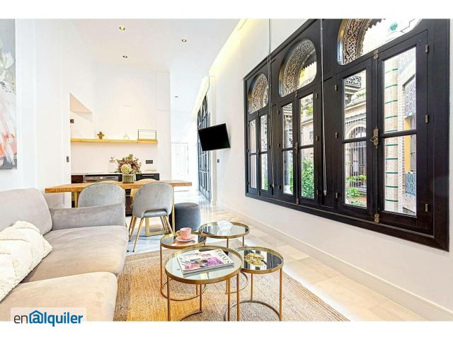 This charming apartment is located in the best area of Seville, right in the heart of the Santa Cruz neighborhood, a perfect spot to enjoy the city?s most delightful corners. You enter through a hallway with large windows and glass doors overlooking the building?s entrance, where you can admire a beautiful Andalusian courtyard with greenery. At the end of the hallway to the right, you?ll find the elegant open-plan kitchen, fully equipped with all the utensils needed for a comfortable stay. Next to the kitchen, the dining area features a table and chairs for four, plus a TV. The living room, with a sofa, side table, and windows facing the courtyard, offers a bright and relaxing space. The bedroom, located adjacent to the living room, is very quiet and bright, with a balcony overlooking the street and a double bed. It includes a built-in wardrobe and a modern, fully equipped en-suite bathroom with a shower. Located on the exclusive Placentines street, from the apartment?s doorstep you can enjoy direct views of the iconic Giralda, just 100 meters away. You can explore Seville?s main monuments on foot without needing transportation, truly a luxury in the historic city center. The booking of each (hidden) accommodation includes the offer of extra experiences or activities to improve your experience, which are managed by external providers, who will inform you by e-mail or (hidden), and you can contract or refuse them. For more information about the management of experiences and extra activities of the accommodations, please visit our Privacy Policy on our official website. ** For monthly stays, water and electricity supplies will be included up to a maximum of ? 100 per month. If the expenses are higher, the guest will have to pay the difference. The corresponding invoice will be sent by the accommodation to the guest to verify the expenses** During your stay, the access to the property is limited exclusively to the number of individuals specified at the booking process. Consequently, entry to the property is strictly prohibited for persons not registered as guests. Failure to adhere to this rule will result in an additional charge amounting to 50% of the total cost of the stay as a penalty, or alternatively, immediate expulsion from the accommodation.