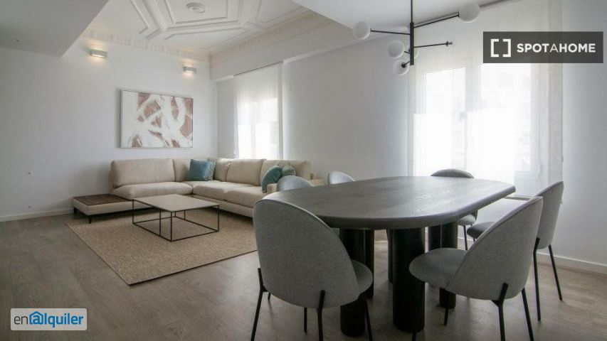 Disfruta de una vida con estilo en este apartamento de 4 dormitorios ubicado en el vibrante barrio de El Pilar, en Valencia. Con calefacción central y aire acondicionado, este apartamento completamente amueblado incluye comodidades modernas como lavavajillas y TV. La cocina equipada, la lavadora compartida y el wifi lo convierten en una opción ideal para tu estilo de vida. Spotahome ha revisado personalmente esta propiedad para garantizar su comodidad y calidad. El Pilar se encuentra cerca de numerosas atracciones turísticas. En las inmediaciones, encontrarás el Grafitis Canvi, la Plaza del Miracle del Mocadoret y el Mural de Stillonoir, ideales para explorar la cultura. Otros lugares destacados, como La Menina de Manolo Valdés y la Oficina de Turismo del Ayuntamiento de Valencia, se encuentran a poca distancia a pie, ofreciendo una experiencia urbana enriquecedora justo al lado.
