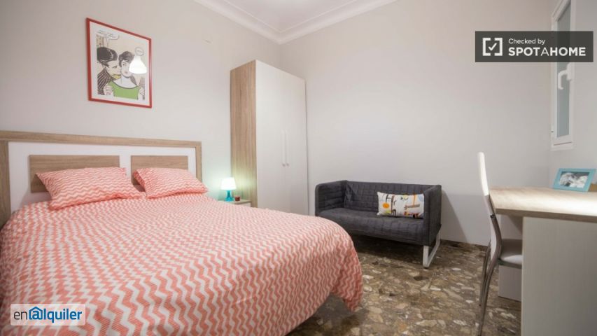 Spotahome presenta con orgullo esta habitación completamente amueblada en un piso compartido de 5 habitaciones en alquiler en el vibrante barrio de Ruzafa, Valencia. El piso está equipado con comodidades modernas como lavadora, horno y cocina totalmente equipada. No se admiten parejas ni mascotas. Estudiantes y profesionales son bienvenidos. ¡verificado por Spotahome para tu tranquilidad! Ruzafa es famoso por su vibrante cultura y su conveniente ubicación. Cerca, podrás disfrutar de una variedad de restaurantes como Pascualín, el Chiringuito de Ruzafa y Centelles 49. Para disfrutar del ocio y la cultura, Thebest1, el Barrio de Ruzafa y Falla Cádiz-Los Centelles están muy cerca. ¡descubre tu nuevo hogar en Ruzafa!