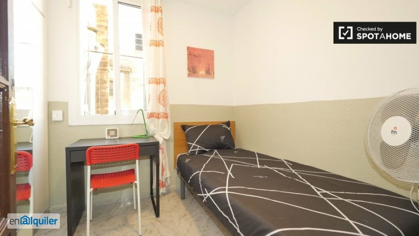 Bienvenido a esta encantadora habitación interior en un piso compartido de 4 habitaciones en el Raval, Barcelona. La propiedad se entrega completamente amueblada y cuenta con cocina equipada, balcón terraza y lavadora privada. Spotahome ha revisado personalmente esta propiedad para su tranquilidad. Este anuncio es perfecto para profesionales y estudiantes. Tenga en cuenta que el wifi, la electricidad, el gas y el agua se pagan al propietario como una cantidad fija. Situado en el vibrante barrio de el Raval, el apartamento está rodeado de importantes atracciones turísticas como el Monumento a Santa Eulalia, la Rambla del Raval y el Gato de Fernando Botero, todos a poca distancia. Explore los lugares emblemáticos y sumérjase en el animado ambiente de esta zona.