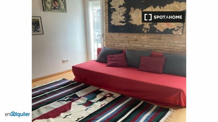Descubra este impresionante apartamento de 2 dormitorios ubicado en el vibrante barrio de Russafa, Valencia. Esta propiedad completamente amueblada ofrece cocina equipada, aire acondicionado individual, lavadora y tv. El apartamento también cuenta con un balcón, perfecto para relajarse al aire libre. Se permite fumar en el balcón. El wifi y la ropa de cama están incluidos en el alquiler. Todas las facturas se gestionan por separado y se pagan al momento de la factura al propietario. Spotahome ha revisado personalmente esta propiedad para garantizar su fiabilidad. Russafa es una zona animada y con una rica cultura, conocida por su ambiente artístico y su oferta gastronómica. Este apartamento está idealmente ubicado cerca de algunos de los lugares turísticos de Valencia, como Valentia, el Barrio de Ruzafa y la Plaza del Doctor Landete. Numerosos restaurantes, como Gran Brodel y Pampa Bar, se encuentran cerca para su comodidad. Disfrute de vivir en uno de los barrios más dinámicos de Valencia, con fácil acceso a todos los servicios y atracciones.