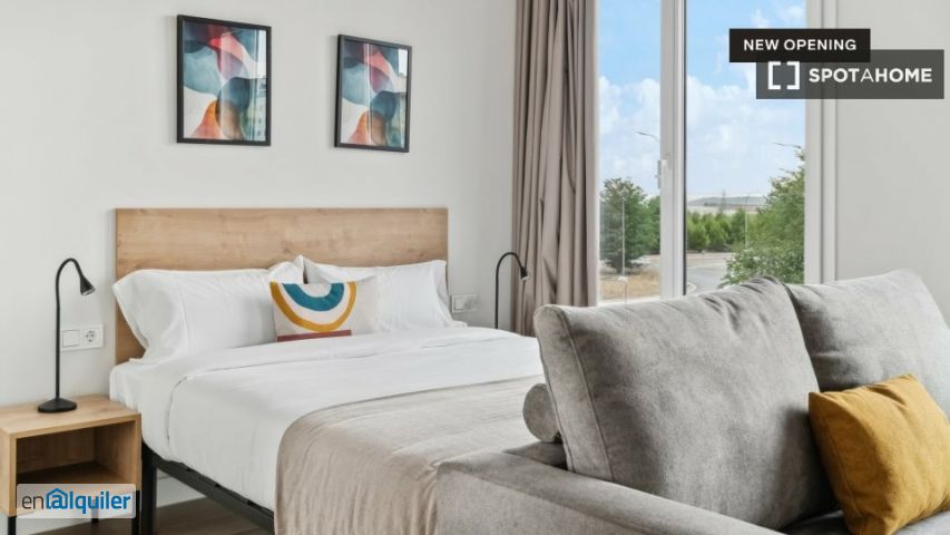 Con elegantes estudios y apartamentos de 1 y 2 dormitorios, este moderno edificio es la solución ideal para disfrutar de estancias flexibles en Madrid. Ubicado en el Ensanche de Vallecas, este alojamiento ofrece un estilo de vida integrado que se adapta a diferentes estilos de vida, incluyendo espacios completamente amueblados y servicios de primera clase. Los residentes pueden disfrutar de un momento de relax en la terraza y la piscina, ponerse en forma en el gimnasio o disfrutar de una noche de cine en la sala de cine. El edificio también incluye espacios de coworking y salas de reuniones, ideales para la productividad y la concentración, así como salas comunes y zonas ajardinadas exteriores. Disfrute de la máxima privacidad y comodidad en su propio estudio. Este espacio, totalmente equipado y amueblado, incluye una elegante sala de estar para relajarse y desconectar, una pequeña cocina para cocinar sus platos favoritos y un baño privado. Planta: 7. ª
