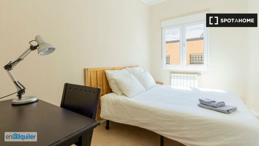 Amplio piso de 5 dormitorios disponible para alquilar cerca del metro Prosperidad en Chamartín, Madrid. El apartamento de 88m² es soleado y tiene un amplio salón y una cocina totalmente equipada, donde encontrará un horno y mucho espacio para guardar cosas. Hay 2 baños en la propiedad, lo que facilita la vida compartida. Una lavadora también está en el apartamento para su uso. Prosperidad es un barrio bien comunicado al norte del centro de la ciudad de Madrid. Lleno de tiendas, restaurantes, cafés, bares y pequeños parques, ¡vivirás una vida verdaderamente local en Prosperidad!