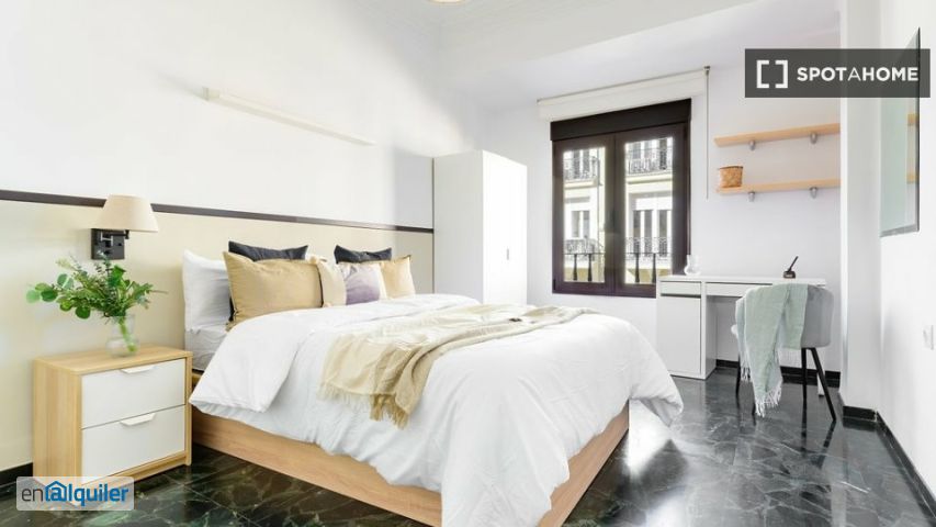 Descubre tu próximo hogar en esta habitación completamente amueblada disponible en un piso compartido de 7 habitaciones en Russafa, Valencia. La propiedad es exterior, cuenta con cocina equipada, balcón o terraza e incluye muebles. Incluye tv, lavadora y horno para tu comodidad. El piso ha sido revisado por Spotahome para una experiencia de alquiler sin estrés. Cuenta con calentador de agua de gas natural y calefacción eléctrica individual. Situado en el vibrante barrio de Russafa, este alojamiento ofrece atracciones turísticas cercanas. Explora lugares de interés como el Mural Fashion Victims, la Plaza de Toros de Valencia y la Estación del Norte de Valencia, todos a poca distancia. Sumérgete en la belleza de Valencia mientras disfrutas de la comodidad de este piso compartido.