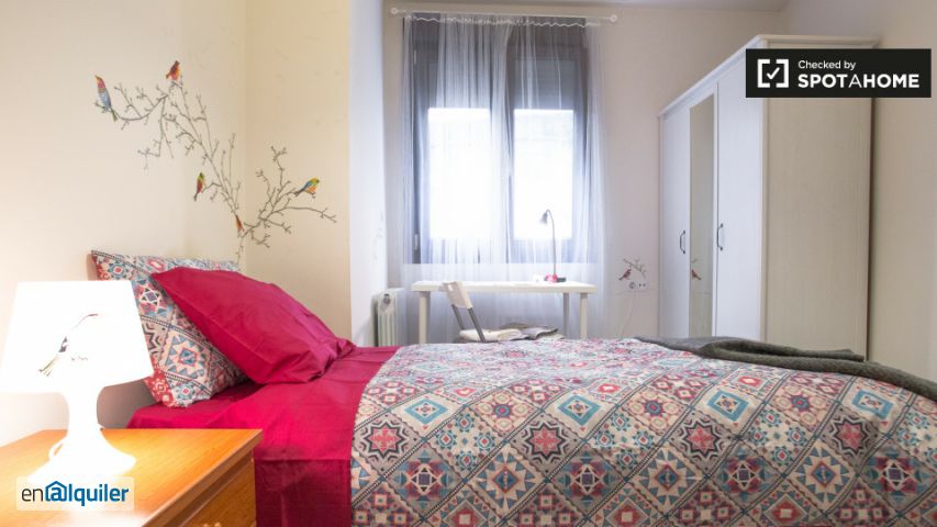 Las habitaciones están disponibles para alquilar en un apartamento de 110 m² 4 dormitorios en el barrio de Bilbao la Vieja, a pocos pasos de la Casco Viejo y las centrales barrios Indautxu y Abando. El metro le permite acceder fácilmente a la Universidad de Deusto, y la estación de tren de Zabalburu se encuentra a sólo unos pasos del apartamento.