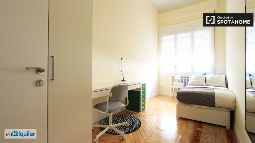 Habitación luminosa con escritorio en el apartamento de 7 dormitorios, Retiro