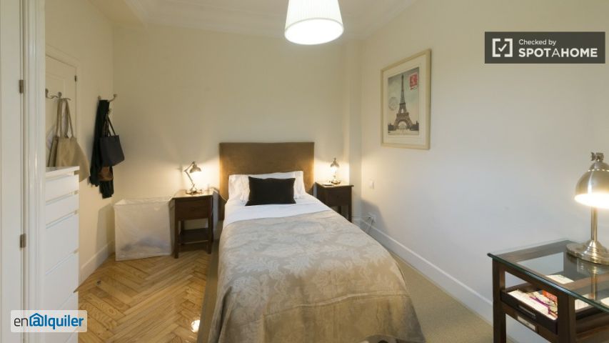 Habitación luminosa con ventana con patio interior en piso compartido, Chamberi
