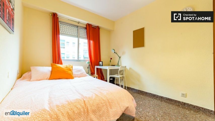 Habitación soleada con ventana con vistas a la calle en un apartamento de 5 dormitorios, Algirós