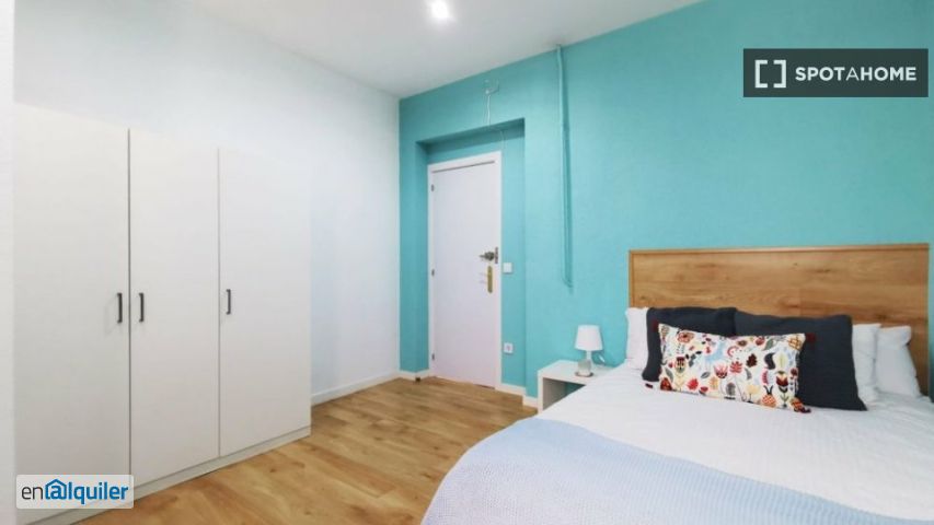 Hay habitaciones luminosas y coloridas disponibles para alquilar en este espacioso 160 m², apartamento 9-dormitorios cerca del centro de la ciudad. El apartamento tiene suelos de madera y paredes de colores cálidos, proporcionando un ambiente acogedor. Las principales áreas comunes incluyen la sala de estar comedor y la cocina totalmente equipada. También hay 2 baños completos para compartir. El apartamento está situado en el animado barrio de la Latina, conocida por su alto número de deliciosos bares de tapas. El apartamento está en el corazón de este barrio con todos los servicios y comodidades a poca distancia. Usted también tiene el famoso mercado del Rastro cercano, que tiene lugar cada domingo por la mañana.
