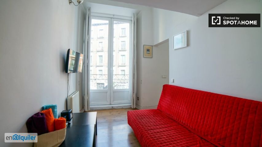 ¡este apartamento de 1 dormitorio que hay que ver está muy bien iluminado y en una excelente ubicación! Tiene una hermosa escalera de caracol, una combinación de colores rojo y blanco y un pequeño y lindo balcón. Esta propiedad cuenta con una moderna cocina con lavadora y un baño impecable. Hay áreas de estar bien iluminadas gracias a los grandes ventanales de piso a techo. Este apartamento ha sido hábilmente planificado y cuidadosamente ejecutado! ¡nos encantó! Conocida como el corazón de Madrid, esta increíble ubicación lo muestra todo. ¡fantásticos restaurantes, lugares de importancia histórica, excelentes bares y cerca de todo! Está bien conectado con el resto de la ciudad y ofrece una variedad de opciones de transporte. El área está salpicada de lindas y pequeñas plazas (usualmente acompañadas por encantadoras terrazas y encantadores restaurantes). También hay una gran cantidad de supermercados a poca distancia. Definitivamente lo calificamos como uno de los lugares para estar en Madrid.