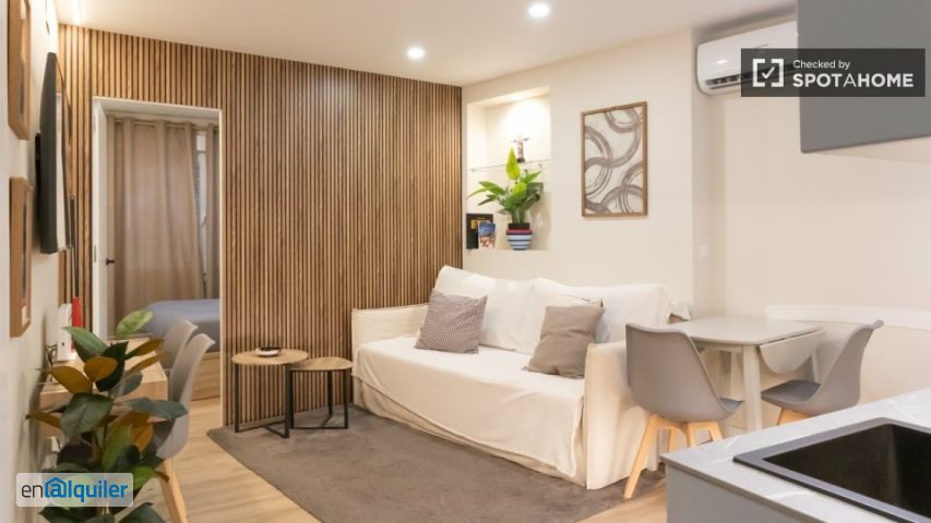 ¿buscas un alojamiento cómodo en la zona de Universidad de Madrid? Este apartamento de 1 dormitorio cuenta con elegantes interiores y está equipado con aire acondicionado individual, calefacción eléctrica individual y lavadora privada. Además, la ropa de cama está incluida y ha sido revisada personalmente por Spotahome para tu tranquilidad. Todos los gastos están incluidos, para que tu estancia sea perfecta. Ubicado en el vibrante barrio de Universidad de Madrid, encontrarás numerosos puntos de interés en las inmediaciones. Atracciones importantes como la Gran Vía, la Farmacia Deleuze Isasi y el Azotea Othel23 están a poca distancia a pie. El Edificio España también está cerca, ofreciendo un excelente acceso para explorar la ciudad. Esta ubicación combina comodidad con atractivo cultural, creando un entorno ideal para los residentes.