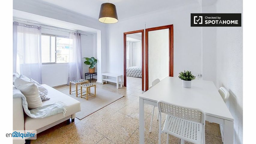 Se alquila piso de 3 dormitorios amueblado en Burjassot, Valencia. La vivienda se encuentra en la 3ª planta de un edificio sin ascensor.