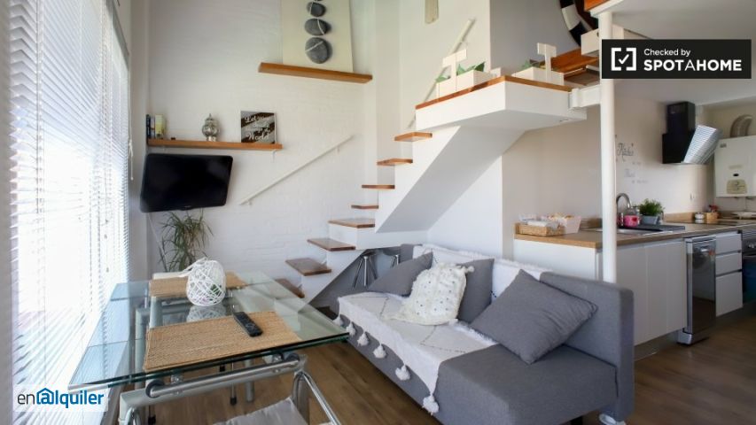 El loft más encantador _porque está lleno de encanto_ ¿me gustará aquí? Depende ¿estás buscando un lugar elegante en el centro de Valencia? No busques más. Bienvenido a casa. ¿de Verdad? Dime más Tendrás la ciudad a tu alcance en este encantador apartamento. Con una cocina completa a mano, una fabulosa terraza para descansar y una excelente ubicación en el centro de la ciudad, este estudio lo tiene todo. Creemos que este es un gran lugar para cualquiera que busque un apartamento céntrico con todos los lujos de un apartamento más grande. Sus 3 razones principales para vivir aquí: - Siéntete acogedor: el dormitorio tipo loft es encantador. - Toma aire fresco en el balcón - felicidad. - Explore el centro de la ciudad: lo mejor de Valencia está justo afuera de su puerta. Pero necesitas saber esto - el apartamento está en el quinto piso de un edificio sin ascensor: ¿objetivos de entrenamiento? Su inspector de viviendas, Denis, dijo: _ "me encanta esta propiedad. Es realmente genial y moderno. Se distribuye en 2 plantas, tiene una terraza enorme y es muy céntrica ". _ Ayúdame a decidir Este es un encantador quinto piso, apartamento de 2 dormitorios en la calle de Donoso Cortés, Valencia. Tiene estilo. Tiene una cocina completa. Está en una excelente ubicación. Todo lo que necesita? Tú. Es perfecto para cualquiera que busque una casa acogedora pero elegante con un poco de espacio exterior en el centro de Valencia.
