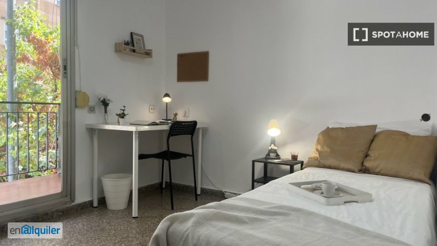 Esta encantadora habitación compartida en un apartamento de 4 habitaciones está disponible para alquilar en el encantador barrio de Torrefiel, Valencia. El apartamento se entrega completamente amueblado y ofrece comodidades esenciales como calefacción eléctrica y una cocina bien equipada. Además, incluye todos los gastos: luz, agua, gas y wifi. Verificado por Spotahome, ¡puedes alquilar aquí con total tranquilidad! El barrio de Torrefiel cuenta con numerosas atracciones cercanas. A un corto paseo, encontrarás la Estatua Don Bosco y Walktuk, que ofrecen vistas serenas y un rico patrimonio cultural. Para salir a cenar, tienes excelentes opciones como Tapas Contigo y el Rincón de Betty en las cercanías. Esta zona residencial combina un entorno tranquilo con fácil acceso a todos los servicios.