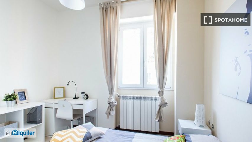 Esta habitación completamente amueblada en un piso compartido de 8 habitaciones se encuentra en Castillejos, Madrid. El apartamento está equipado con electrodomésticos modernos, como lavadora, lavavajillas, horno y tv. La cocina está completamente equipada para tu comodidad. Spotahome ha revisado la propiedad para garantizar que cumple con los estándares de calidad. Todos los gastos están incluidos (luz, agua, gas y wifi). Ten en cuenta que este alojamiento es apto para profesionales y estudiantes; no se admiten parejas, mascotas ni fumar. Situado en el barrio de Castillejos, el apartamento está convenientemente ubicado cerca de una variedad de servicios y atracciones. A poca distancia a pie encontrarás restaurantes de cocina americana, italiana, china y griega, como Mad Grill Cuzco y Manzoni Trattoria. Entre las principales atracciones turísticas cercanas se encuentran la Plaza de Castilla, el Monumento a Calvo Sotelo y la Plaza de Cuzco (Madrid). Disfruta del ambiente animado y de los numerosos lugares de interés en los alrededores del Paseo de la Castellana.