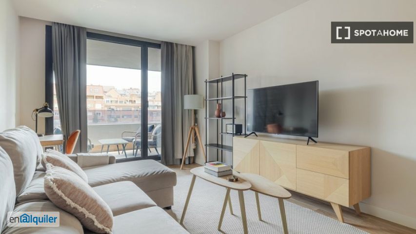 Este elegante apartamento de 1 dormitorio en Valdeacederas, Madrid, está disponible para alquilar. Está completamente amueblado y equipado con comodidades modernas, como ascensor, cocina equipada, lavavajillas, horno y tv. Cuenta con aire acondicionado individual y calefacción central para su máximo confort. Dispone de lavadora privada para sus necesidades de lavado y balcón o terraza. Hay aparcamiento disponible, aunque no se admiten mascotas. Todos los gastos, incluyendo electricidad, agua, gas y wifi, están incluidos en el alquiler. Además, la propiedad ha sido revisada personalmente por Spotahome. El apartamento se encuentra en el animado barrio de Valdeacederas, cerca de lugares de interés destacados. Restaurantes cercanos como Sweet Bites Madrid y el Arco ofrecen opciones para comer. Se puede acceder fácilmente a lugares turísticos como Graffiti y el Parque Agustín Rodríguez Sahagún. Otros lugares de interés y servicios también se encuentran a poca distancia, lo que garantiza comodidad y entretenimiento.
