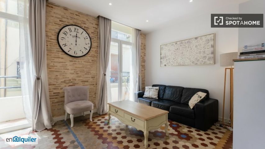 Descubre este encantador apartamento de 3 habitaciones situado en el animado barrio de el Carme, Valencia. Este apartamento completamente amueblado cuenta con una cocina bien equipada con electrodomésticos modernos, incluyendo lavavajillas y horno, aire acondicionado central para tu mayor comodidad, un balcón para disfrutar del aire libre y lavandería comunitaria con lavadora. El inmueble ha sido revisado personalmente por Spotahome, garantizando su excelente calidad y que esté listo para entrar a vivir. Es ideal para profesionales y estudiantes, y también se admiten parejas. Incluye Wifi de alta velocidad. El Carme, un barrio histórico de Valencia, ofrece fácil acceso a una gran variedad de lugares de interés cultural y artístico. En las inmediaciones podrás explorar la Calle de Landerer, i-alternative, la Ruta de los Grafitis y el Palacio de Malferit, entre otros lugares de interés. El animado ambiente de este barrio te permite disfrutar de una vibrante escena cultural, convirtiéndolo en una excelente opción para quienes buscan comodidad en un entorno vibrante.