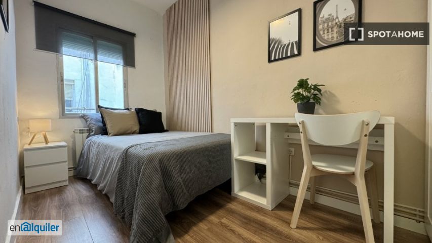Le traduzioni automatiche sono realizzate con Google Translate: può darsi che non siano sempre corrette. Encuentra tu hogar ideal en esta espaciosa habitación en un piso compartido de 5 habitaciones en alquiler en Embajadores, Madrid. La propiedad está completamente amueblada, equipada con aire acondicionado individual y calefacción central para tu comodidad. La cocina está lista para usar con electrodomésticos modernos, incluyendo horno, y hay una lavadora común para tu comodidad. Ten en cuenta que no se permiten mascotas ni fumar en la propiedad. La propiedad ha sido revisada cuidadosamente por un Homechecker de Spotahome, lo que garantiza que su calidad cumple con nuestros estándares. Ubicado en Embajadores, Madrid, tienes fácil acceso a numerosas atracciones. Cerca, puedes visitar el Mural "las Raíces del Barrio", la Plaza de Tirso de Molina, el Rastro y muchos otros lugares de interés cultural. Este barrio cuenta con una gran cantidad de monumentos históricos y artísticos, lo que te garantiza que siempre encontrarás algo que explorar. Reserva tu alojamiento hoy mismo a través de Spotahome.