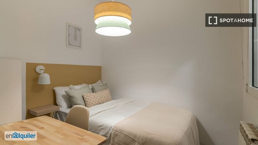 Este alojamiento ofrece una cómoda habitación compartida en un apartamento de 5 habitaciones situado en el encantador barrio de Sant Antoni, en Barcelona. Totalmente amueblado, cuenta con una cocina bien equipada, lavadora compartida y calefacción eléctrica. No se permite fumar ni se admiten mascotas. Todos los gastos básicos, como luz, agua, gas y wifi, están incluidos. Este alojamiento ha sido verificado por Spotahome, por lo que puede confiar en su calidad. Sant Antoni es un barrio vibrante con una amplia gama de servicios. En las inmediaciones encontrará tiendas como Bonpreu y Primaprix Barcelona Viladomat, así como restaurantes como Lamun Cuina Thai y la Fábrica del Taco en la calle Calabria. La zona también cuenta con varios atractivos turísticos destacados, como la Feria de Reis, la Plaza Conmemorativa del Mistral y la Avenida del Paralelo, que muestran el encanto de Barcelona.