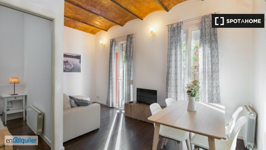 Piso amueblado de 2 habitaciones en alquiler en Travessera de Gràcia. La propiedad está en el segundo piso de un edificio con ascensor. La propiedad incluye aire acondicionado, balcón, lavavajillas y televisión.